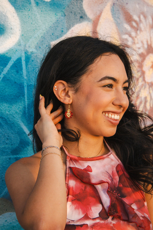 Heart Crystal Earrings - RED