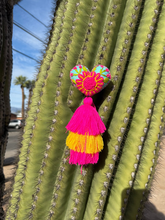 Sun Flower Embroidered Heart Pom Pom